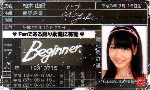 柏木由紀 AKB48免許証 Beginner